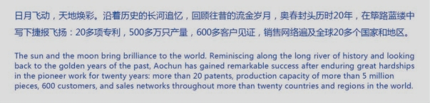 奧春注重人才的培養(yǎng)和企業(yè)文化的建設(shè)。以客戶(hù)為中心、保障股東權(quán)益、與員工共成長(zhǎng)、積極回饋社會(huì),努力打造一個(gè)充滿(mǎn)活力、責(zé)任感和凝聚力的企業(yè)。
